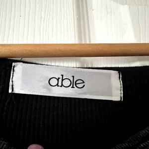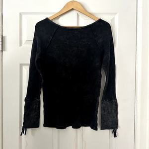 EUC ABLE Black Waffle Knit Lace Cuff Thermal Long Sleeve Shirt Sz XL