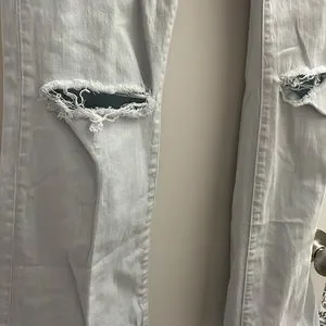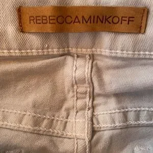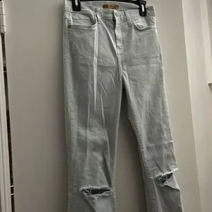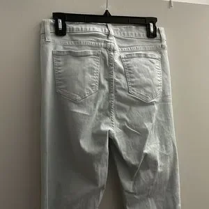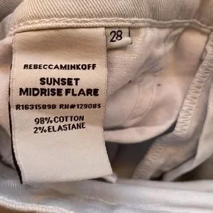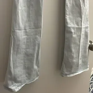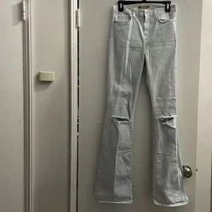 Rebecca Minkoff sunset flare midrise Jean in baby blue with distressed knee