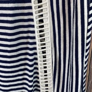 Navy blue and white striped tank. Very soft Rayon blend tank and made in the U.S.A. Good pre-owned condition. Enjoy 😊!