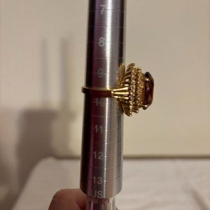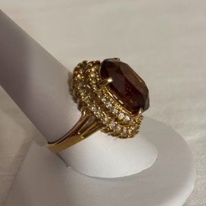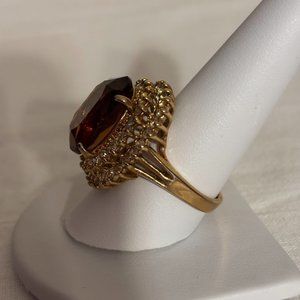 Beautiful Brown Color Ring with Crystals in Gold Tone Setting - size 9.5