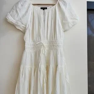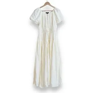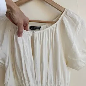J Crew Ivory Elena Puff Sleeve Dress in Crepe de Chine Womens Size XXS Midi