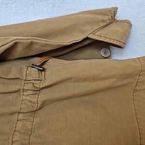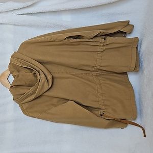 Pre-owned, it's in good condition. Size S but can fit medium & large size. It fits me well, and I'm a large. It's oversized on me at 5'2" & 160lbs. It's very cute. The wrist has buttons, so it can be worn loose or cinched at the wrist.