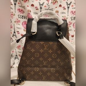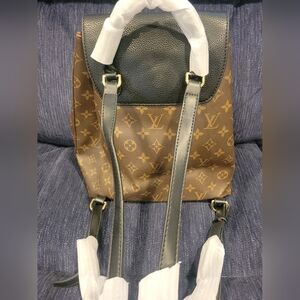 brand new with plastic still attached to the straps. brown and black monogram backpack.