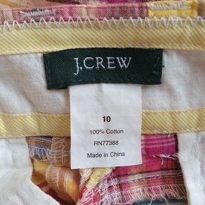 J Crew women's shorts, size 10. Madras plaid in yellow, pink, red, orange, green. No flaws. 100% cotton.