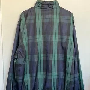 Black, navy and green plaid golf quarter zip with a silver zipper. 2 velcro pockets. Daniel Cremieux brand. Size XXL.