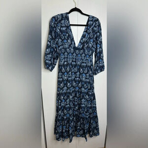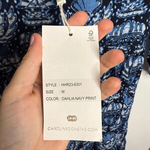 Caroline Constas Blue Dahlia Navy Print Midi Dress - Size Medium NWT
