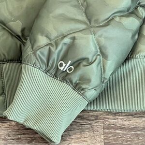 Alo Yoga Camo Quilted Down Puffer Bomber Jacket Full Zip Womens Size Small Green