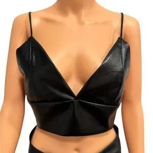 HOUSE OF HARLOW 1960 Vegan Faux Leather Bralette Black Crop Top NWT 8