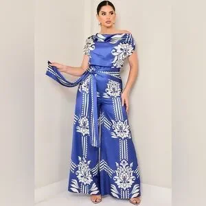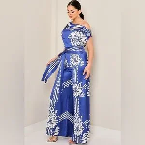 Indulge in luxury with the She's Classy Jumpsuit. This draped asymmetrical one-shoulder jumpsuit exudes elegance and sophistication. The buttoned back hole and concealed zipper add a touch of exclusivity. Complete the look with the front self tie detail.