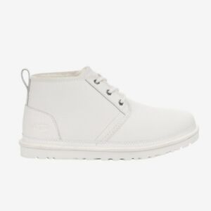 Stylish white leather ankle boots with cozy fur lining. Perfect for cold weather.