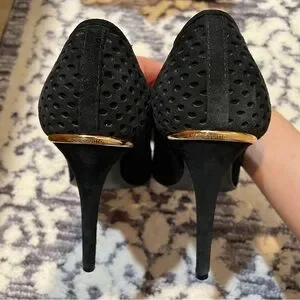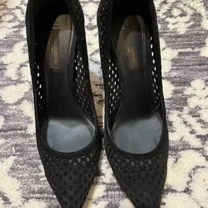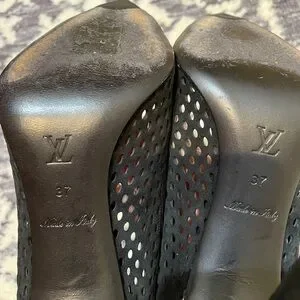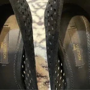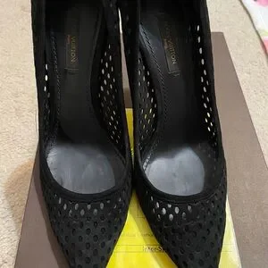 Pre-owned authentic Louis Vuitton eyeline pumps. Size 37, suede material. Has signs or wear and tear mainly where it was laid in the box since suede leaves marks where is touches the surface. Height is 10.5 cm. I don’t have any other box except the box you see in the picture which is the box it gets transfer to the store. No dust bags. Please know your size in LV before purchasing. If you have any questions, concerns, need specific pictures let me know. I’ve already maxed out all pictures I could upload but will figure something out if you need pics.