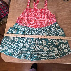 Free People Red Palm Bay Printed Shortalls Multicolor Floral Print Pockets Large