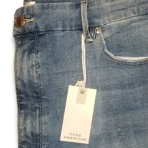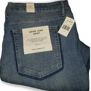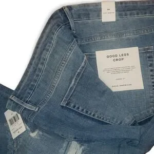 Brand new with tags, Good American Good Legs Crop Jeans. In size 24 women's, plus sized 24. NOT A SIZE 24 INCH WAIST! 27 inch inseam. Mid Blue Color, ripped, busted, SUPER cute with boots or heels. All tags attached! Great for gift giving! From my smoke-free and pet-free home!