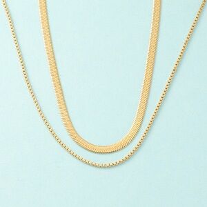 18K Gold Plated Double Layered Necklace*Snake Chain Herringbone Minimalist *LW