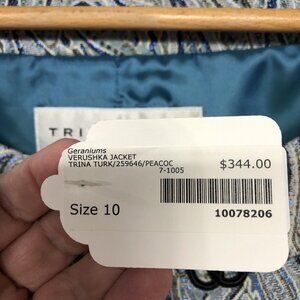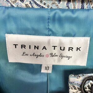 The jacket is from the Trina Turk brand, known for its high-quality clothing and accessories. The jacket's model is Trina Turk Los Angeles Palm Springs, and it falls under the Clothing, Shoes & Accessories, Women, Women's Clothing, Coats, Jackets & Vests categories. Add a touch of elegance to your wardrobe with this stunning jacket.