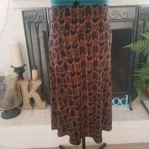 LULAROE Women's Sz L Navy And Orange Safari Tribal Print Flowy Below Knee Skirt
