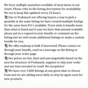 5) Once you're done shopping you may send us an offer for the amount of the sale. Please know we do not entertain low ball offers. This is a full time job and not a yard sale. Please kindly move along.