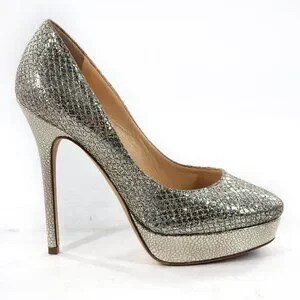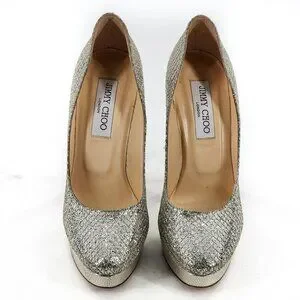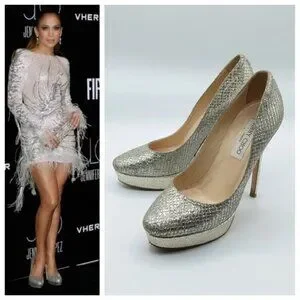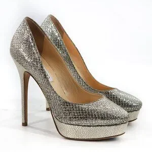 JIMMY CHOO NEW $695 Alex Silver Gold Metallic Leather Platform Pump