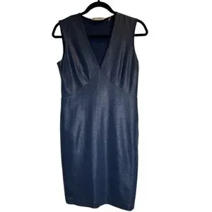 This elegant navy blue sheath dress by Ports 1961 is designed for a sophisticated cocktail night out. It features a striking V-neckline and a daring backless cutout, adding a touch of allure to its sleek silhouette. The sleeveless design and midi length enhance its refined and modern appeal.