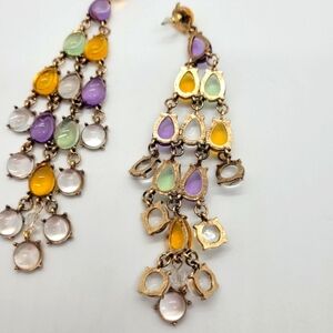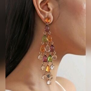 NWT Bohemian Colorful Crystal Dangle Gold Chandelier Earrings