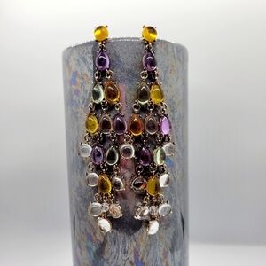 These are stunning! Bohemian vibe with colorful beads & crystals dangle chandelier earrings.