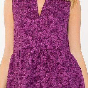 Brand new with tags! THML is a must have. The floral textured fabrication and silhouette are effortlessly sophisticated. This piece features a ruffle collar with a split v-neckline and tiered styling. So versatile, you can pair it with strappy heels to dress it up, or flat sandals for a slightly more casual approach.