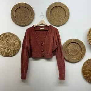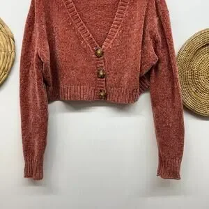 UO Urban Outfitters Pink Cozy Chenille Knit Cropped Cardigan Sweater Medium