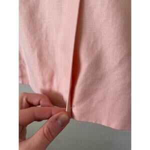 -Style Profile: Banana Republic Linen Cotton Blazer Jacket in Coral. Single Breasted with 2 Button Front Closure. 3 Faux Front Pockets, Notched Collar, 3 Button Cuff with extra button still attached to tag, Baack Single Vent still tacked, Lined. Perfect for Spring Work Wear Office Professional Corporate Executive Easter Summer Preppy