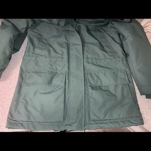 Stay warm and stylish with this green parka. Perfect for chilly days.