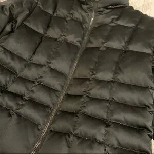 GoodCondition— missing hood that zips on, minor wear, has some staining on the front bottom of jacket. Included a pic of it.