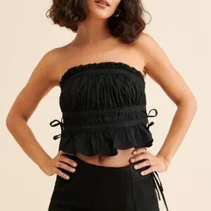 Free People Black Gabby Crop Tube Womens Top Smocked Ruched Side Tie Size Large