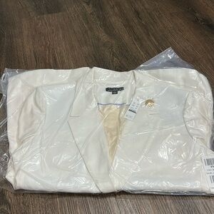 A silhouette that stands out, thanks to the subtly strong shoulders and gently fitted waist. Plus, it's crafted from a smooth, almost-silky linen-blend fabric with a touch of stretch.