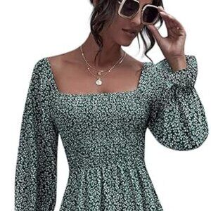 Floerns Women's Boho Square Neck Smocked Long Puff Sleeve A Line Maxi Dress
