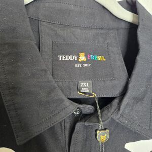 Teddy Fresh Mens - Send Help - Woven - Shirt - Size 2XL - Black - Button Up - Oversized - Streetwear - Graphic Print- New W/ Tags