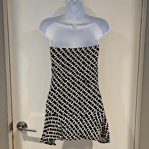 DVF Terry Cloth Cover Up, Chain Link Design, Strapless, Black & White, Size S