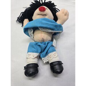 This listing features a rare 2002 Big Comfy Couch Molly 8-inch beanbag plush doll, a highly sought-after collectible. The plush is in good condition for its age, exhibiting minor imperfections consistent with how its vintage: some marking and chipping on the faux leather shoes, a small stain on the back of the outfit, and a loose thread on the mouth (can be cut off and tied if needed). The yarn hair shows some variation in length, which appears to be how it originally came, the yarn hair is also a bit messy. Please review all photographs for a comprehensive assessment of its condition.