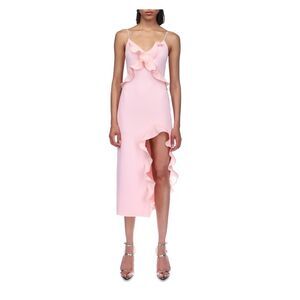 DAVID KOMA Womens Pink Lined Front High Cutout Opening Midi Dress 12