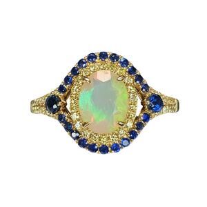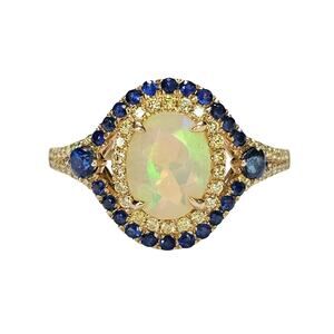 14k Gold Opal, Diamond & Sapphire Halo Ring, Size 10.5
