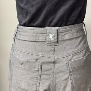 Kuhl Trekr Kapri in gray. Work, travel, or on the trail, the versatile TREKR™ KAPRI is made for women on the move. Soft yet durable, this capri features superior stretch with rebound to maximize every stride while maintaining form and fit. Innovative side seams cinch up for easy conversion into shorts! Premium everyday comfort.