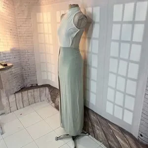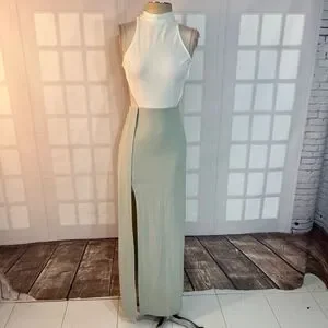 Blithe NWT White Green Open Back Sleeveless Cutout Halter Maxi Dress Small