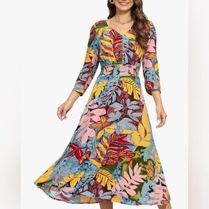 Women’s Floral dress in excellent condition. One time worn for an occasion and has been washed and stored. It looks very elegant and can be dressed up or down! Pair it with a pink purse. Check out my closet for bundling.