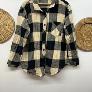 Maurices Black Beige Cotton Button Front Plaid Flannel Shirt Plus Size XXL