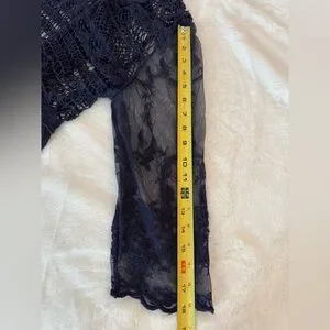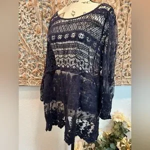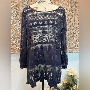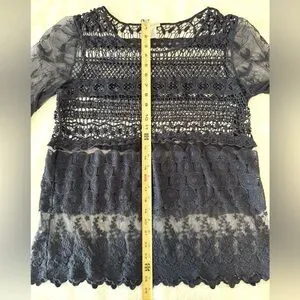 Chico’s Navy Blue Crochet & Lace Blouse- size 2 (L)