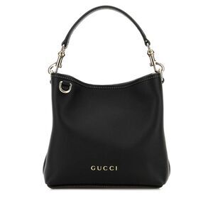 Gucci Women Black Leather Gg Emblem Bucket Bag