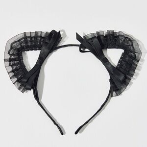 Urban Outfitters Lacey Cat Bow Headband in Black | NEW