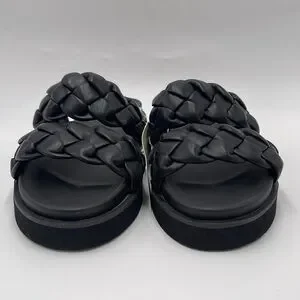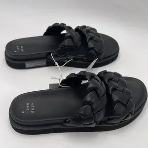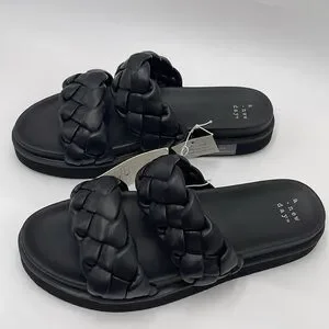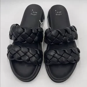 These brand-new A New Day sandals feature a stylish braided design and a comfortable footbed, perfect for casual wear or a day out. The black color adds versatility to any outfit, while the footbed ensures all-day comfort.