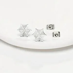 NEW Dainty Spider Web stud Earrings Silver color - Boutique