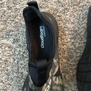 It's time to activate maximum comfort. With these adidas shoes, your daily grind just got easier. The Cloudfoam sockliner brings soft cushioning to make every step feel light and airy. The wide fit feels easy on your feet. Then the slip-on construction and elastic strap make hopping in and out of these a breeze. Badge of Sport graphics elevate the look.
