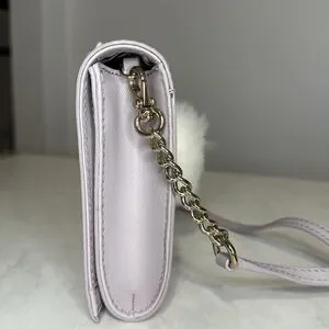 EUC Kate Spade Make Magic Rabbit Cali Crossbody in gray/lavender tone. Chain strap is not adjustable but can be removed to use as a clutch. Perfect for spring and even Easter! There is slight staining above the zipper that may come out with cleaning…I have not tried. Selling as is. See all photos for condition. Please feel free to ask any questions.