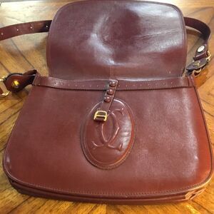 MustDe Cartier Classic Luxury Burgundy Leather Crossbody Bag Good Used Condition